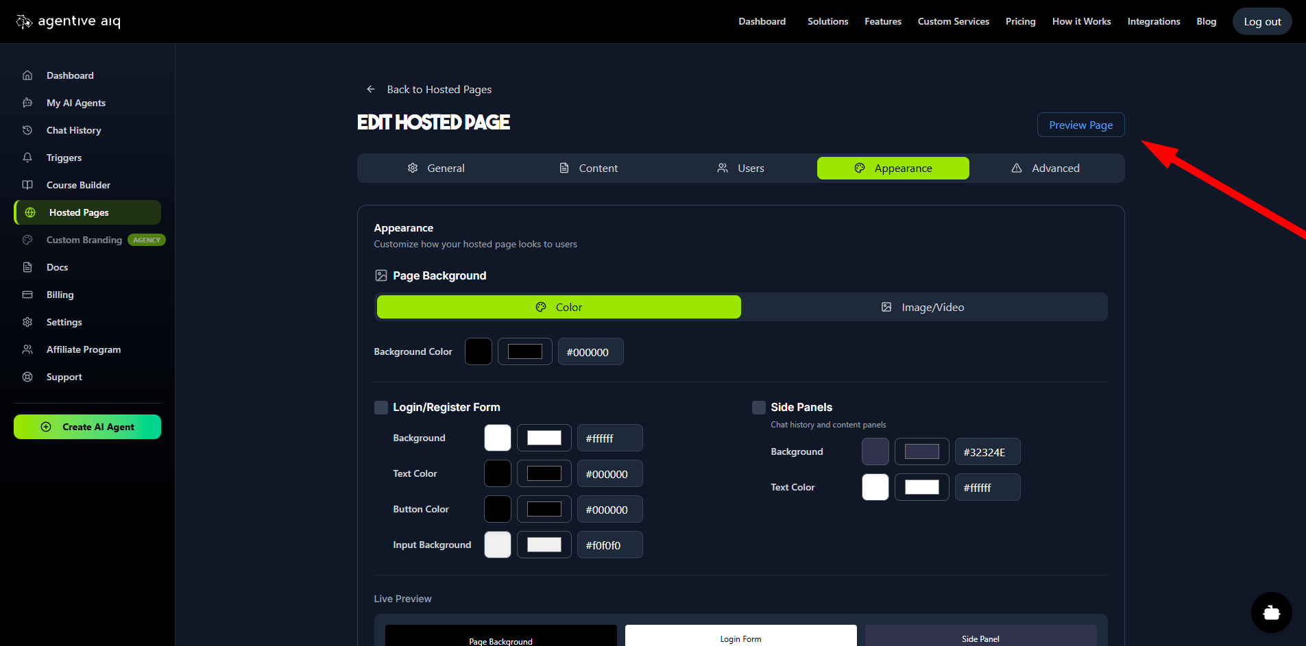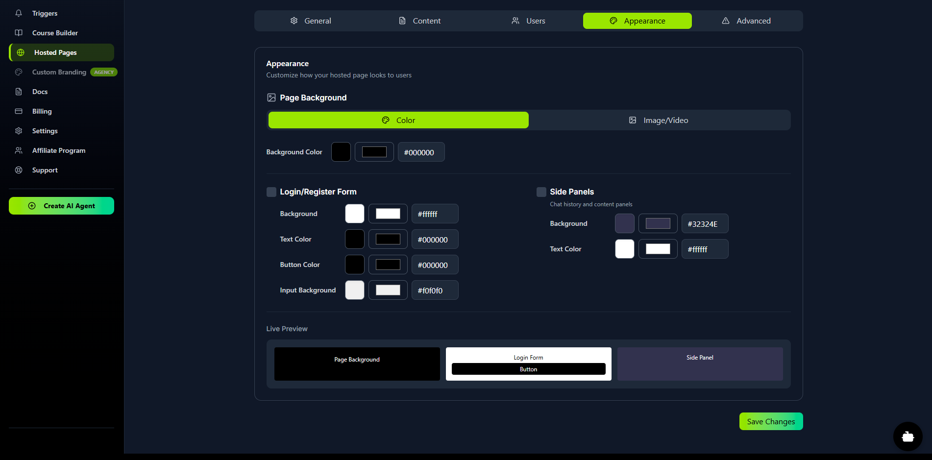 The Appearance tab gives you full WYSIWYG control to brand the entire user experience: