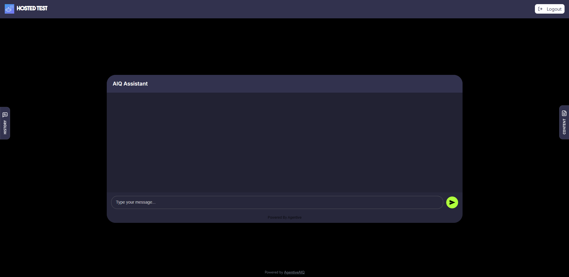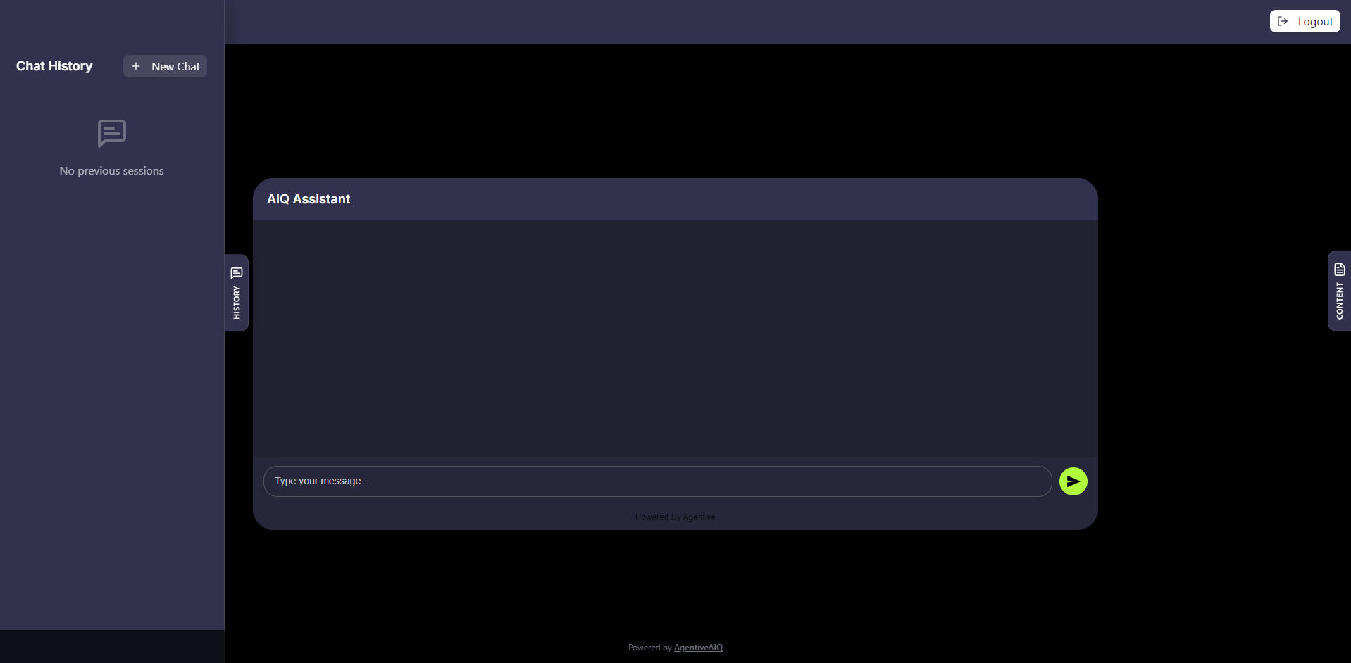 After logging in, they land on the main chat page, with the AI agent in the center.